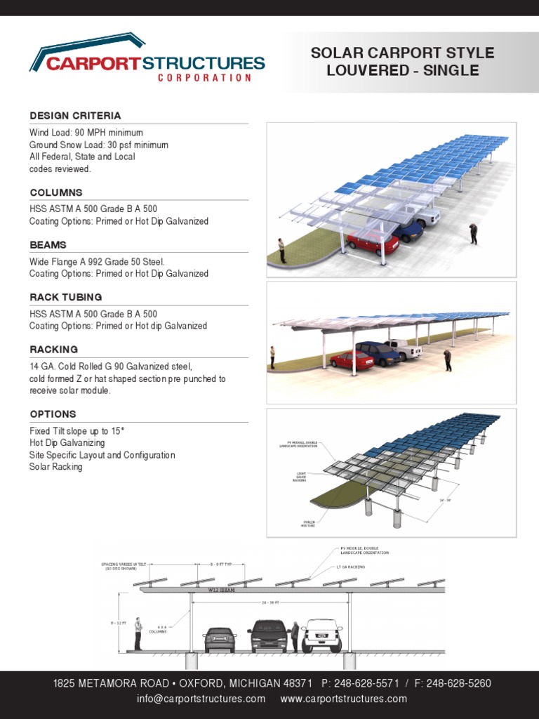 Solar Carport Style Louvered Single